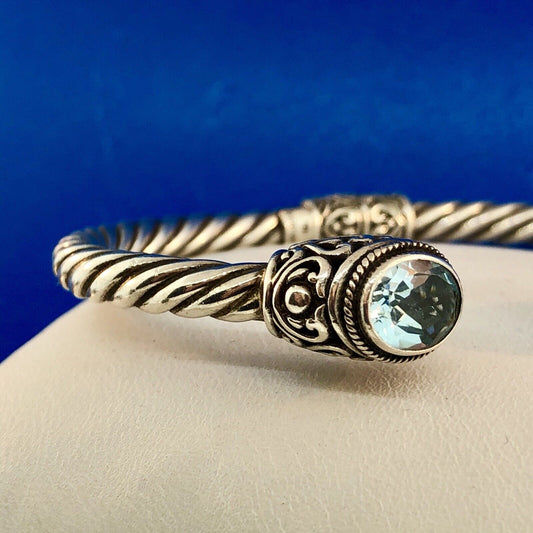 Designer ATI Sterling Silver Blue Topaz Heart Scroll Cable Hinged Cuff Bracelet
