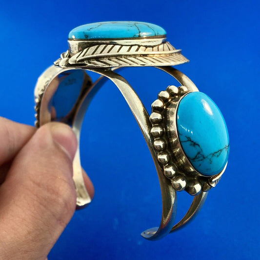 Vintage Taxco TC-216 Sterling Silver 925 Turquoise Trio Statement Cuff Bracelet
