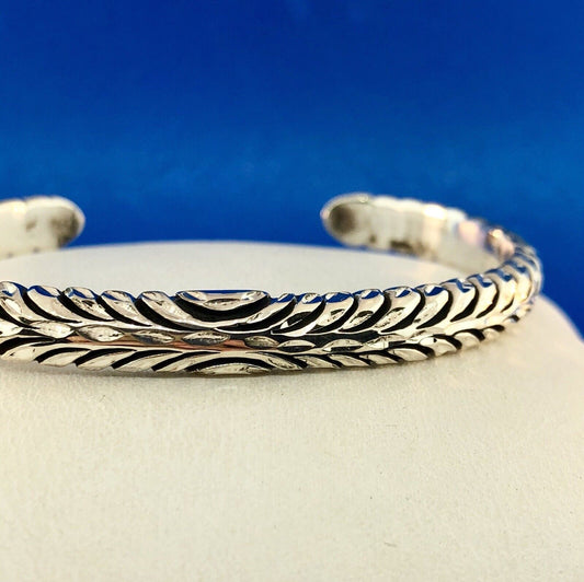 Native American Marked 925 Sterling Silver Diamond Etched Feather Cuff Bracelet