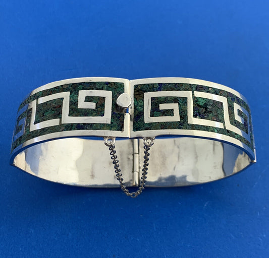 Taxco 925 Sterling Silver Mexico Turquoise Inlay Cuff Panel Bracelet