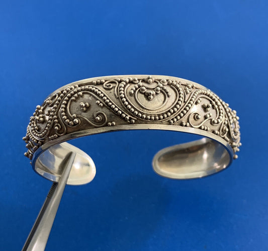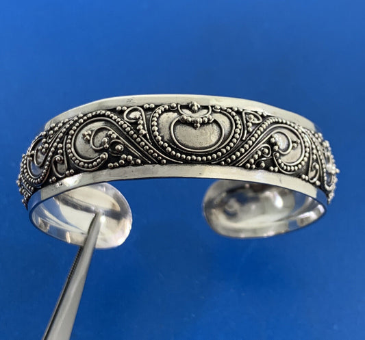 Designer 925 Sterling Silver Balinese Bead And Scroll Work Open Cuff Bracelet