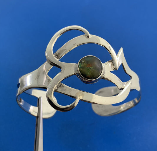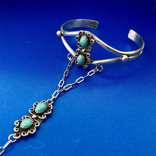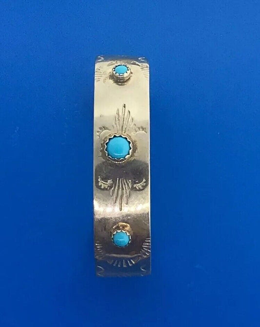 Native American Artisan CM Sterling Silver 925 Turquoise Slave Cuff Bracelet