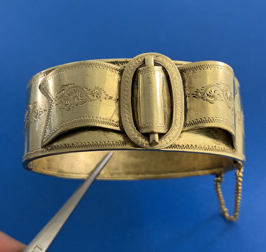 Vintage 925 Sterling Silver Vermeil Floral Scroll Buckle Hinged Cuff Bracelet