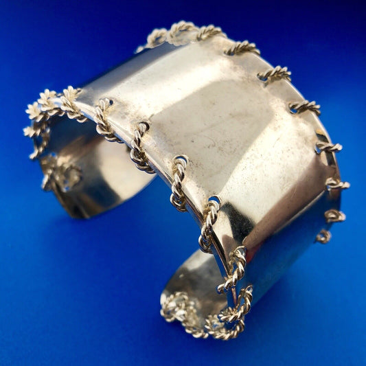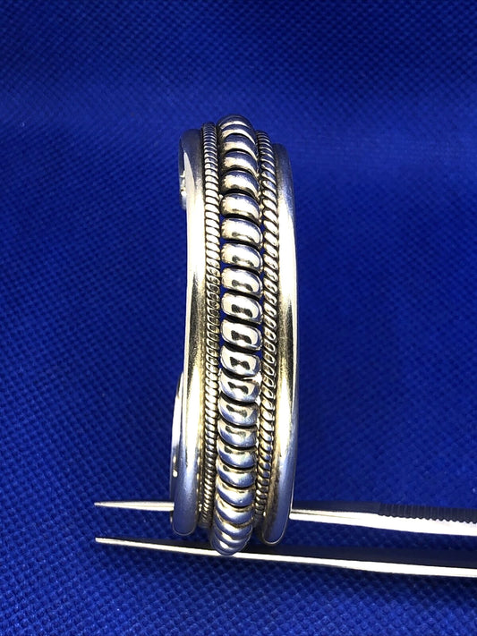 Taxco TC-155 925 Sterling Silver Ribbed Rope Twist Open Statement Cuff Bracelet