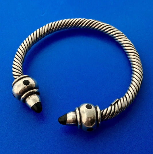 Vintage Taxco Mexico AT Sterling Silver Black Onyx Cable Statement Cuff Bracelet