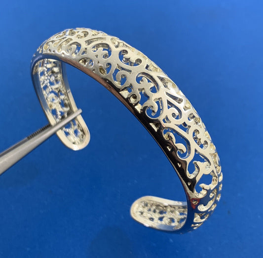Designer 925 Sterling Silver Whimsical Scroll Open Cuff Bracelet