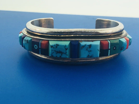 Native American 925 Sterling Silver Turquoise Multi Gem Cuff Bracelet Ronnie