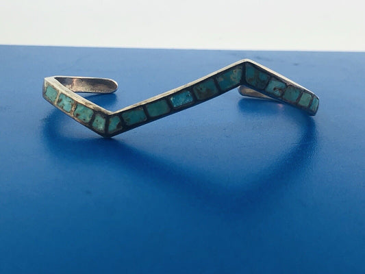 Vintage Native American 925 Sterling Silver Turquoise Modernist Cuff Bracelet