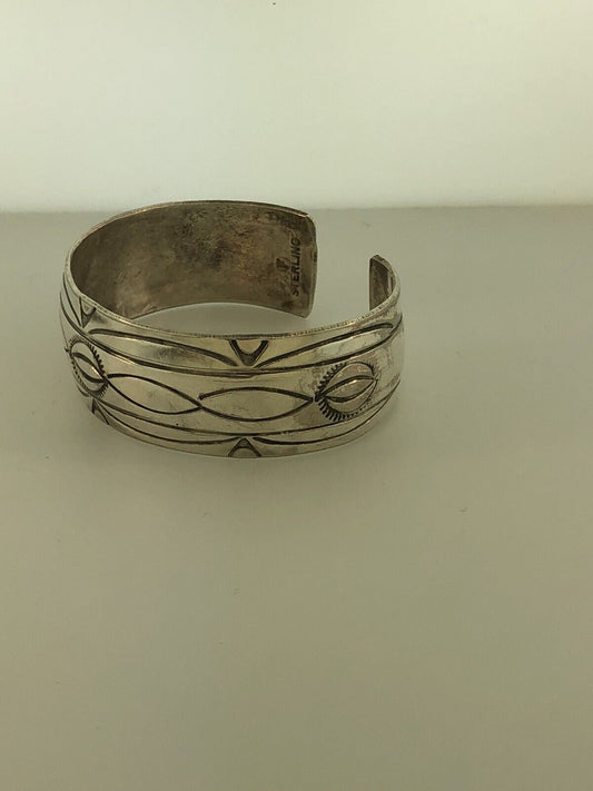 Vintage Navajo Fannie Platero 925 Sterling Silver Concho Style Cuff Bracelet