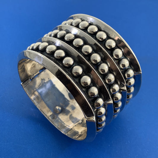 Vintage Taxco TJ-65 925 Sterling Silver Bead Ball Open Statement Cuff Bracelet
