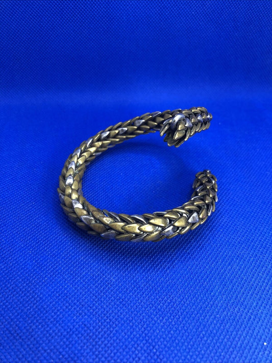 Vintage 1970's Brass & Silver Two Toned Statement Snake Arm Cuff Bracelet