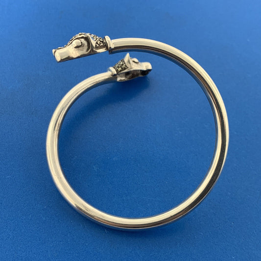 Art Deco Sterling Silver Marcasite Double Devil Dog Head Bypass Cuff Bracelet