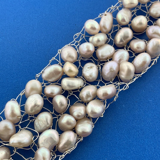 Artisan 925 Sterling Pink Pearl Mesh Statement Wide Cuff Bracelet