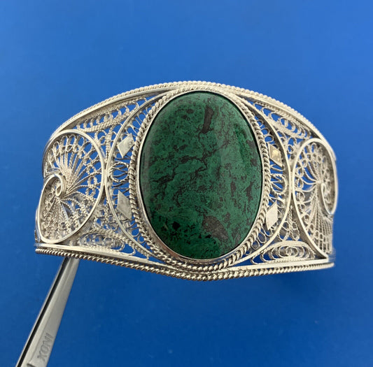 Stunning Israel Sterling Silver 925 Cabochon Green Maw Sit Sit 7" Cuff Bracelet