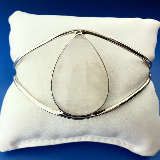 Designer Arya Esha 925 Sterling Silver Blue Moonstone Dramatic Cuff Bracelet