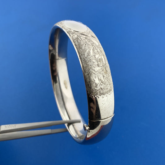 Vintage Sterling Silver Floral Scroll Florentine Engraveable Hinge Cuff Bracelet