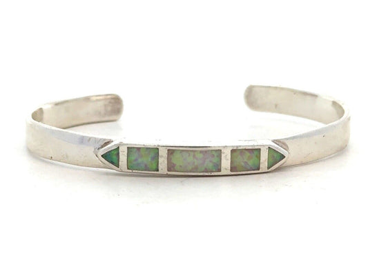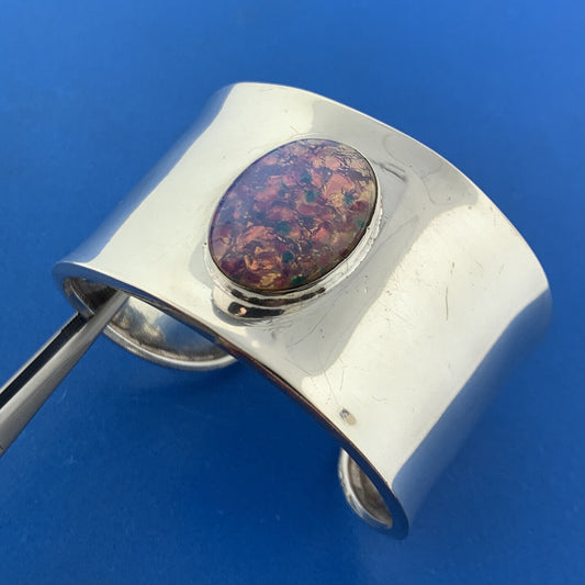 Vintage 925 Sterling Silver Opal Doublet Statement Cuff Bracelet