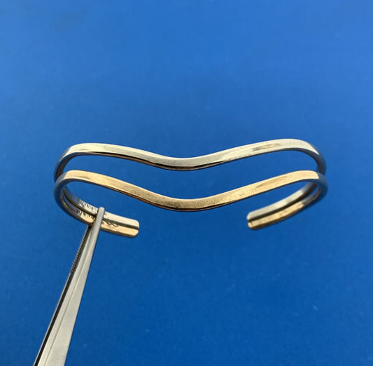 Designer Sergio Lub California Brass Silver Toned Wavy Band 6" Cuff Bracelet