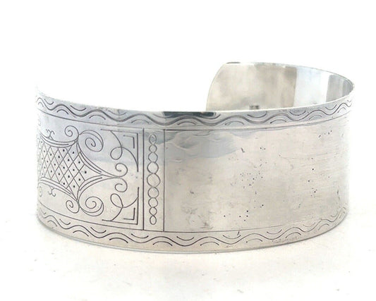 New Orleans Silversmiths Sterling Silver Etched Engravable Open Cuff Bracelet