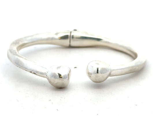 Vintage UNO 925 Sterling Silver Oval Hinged Ball Cuff Bracelet