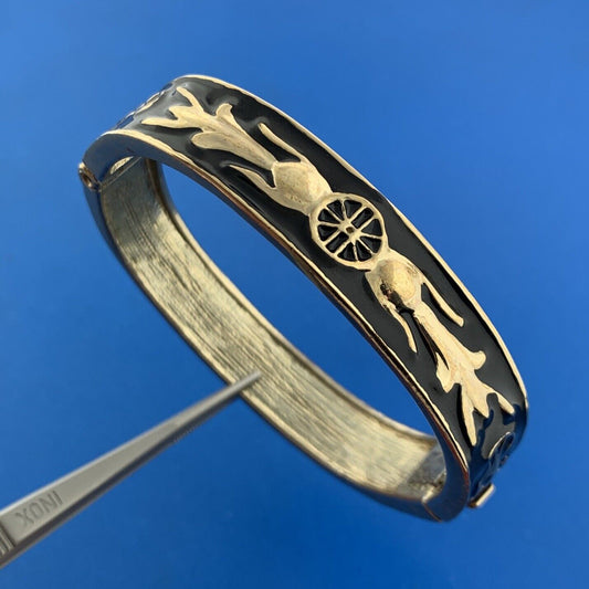 1980's Fabulous Gold Tone Black Gold Enamel Hinged Statement Cuff Bracelet