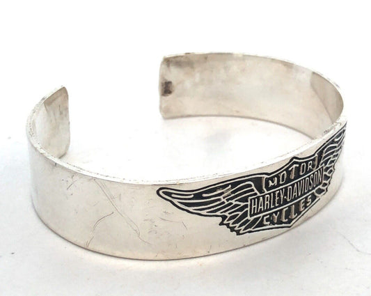Harley Davidson Motorcycles 925 Sterling Silver Oval Open Cuff Bracelet
