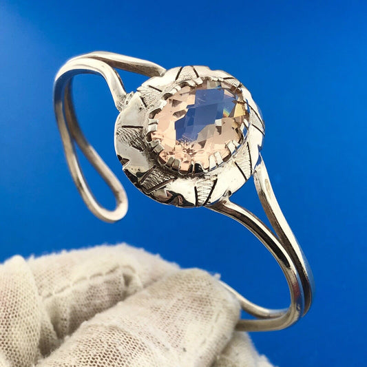 Sterling Silver Morganite Cubic Zirconia Concho Cuff Bracelet