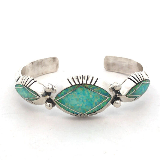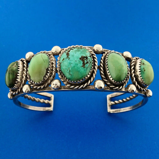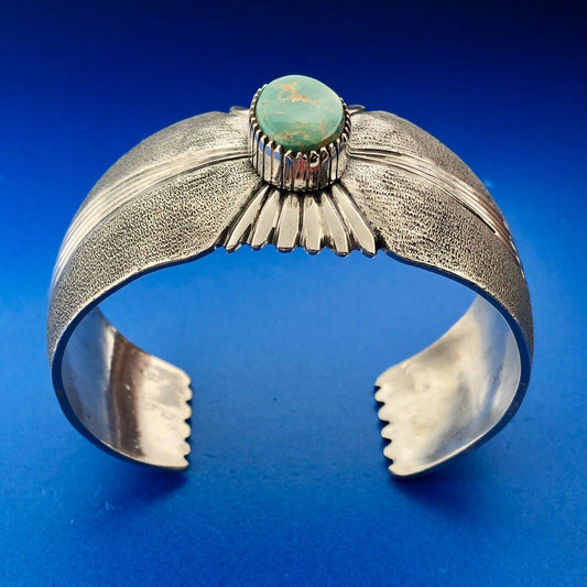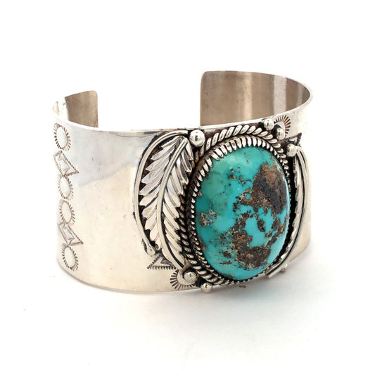 Native American Marian Nez 925 Sterling Silver Oval Turquoise Wide Cuff Bracelet