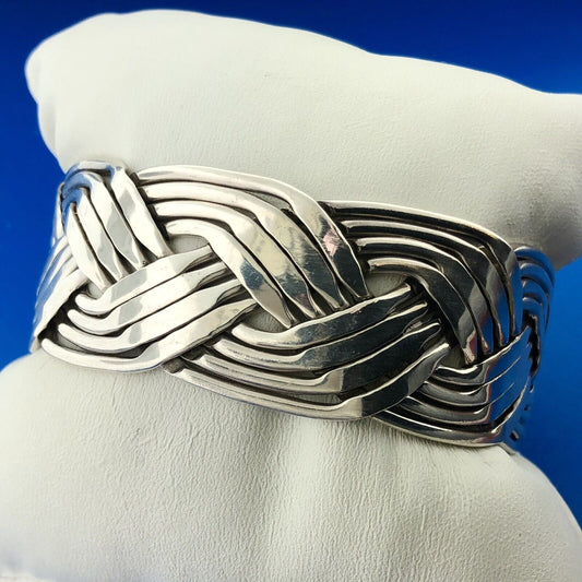 Vintage Taxco Mexico TE-5 925 Sterling Silver Basket Weave Open Cuff Bracelet