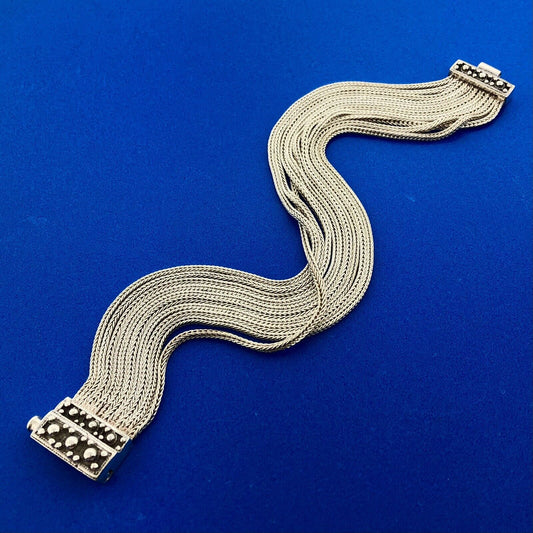 Designer Anatoli 925 Sterling Silver 10 Strand Wheat Link Mesh Cuff Bracelet