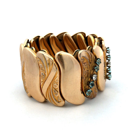 Antique B & N Gold Filled Rhinestone Expandable Wide Cuff Bracelet Original Box