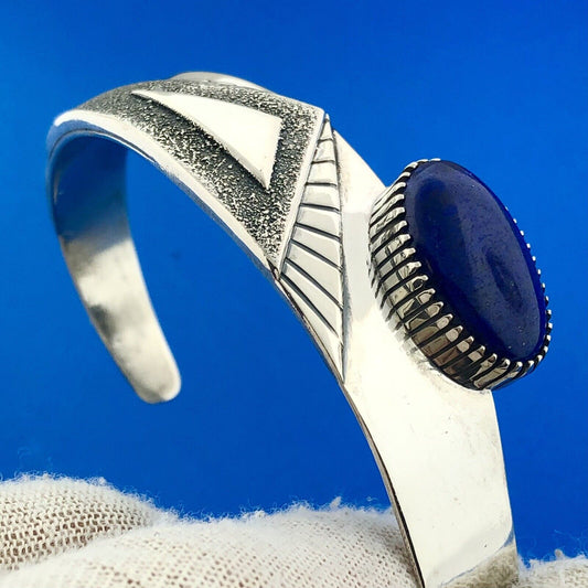 Robert A Lewis Navajo 925 Sterling Silver Lapis Lazuli Modernist Cuff Bracelet