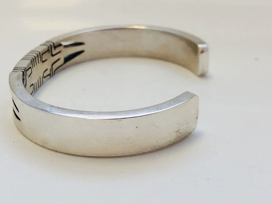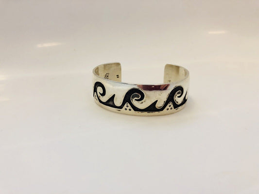 Vintage Native American Sterling Silver Overlay Wave Storyteller Cuff Bracelet