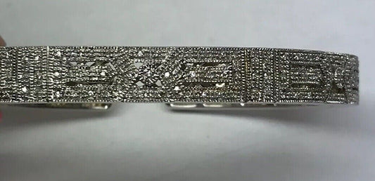 Designer Sterling Silver 925 Diamond Filigree Open Work Hinged Cuff Bracelet