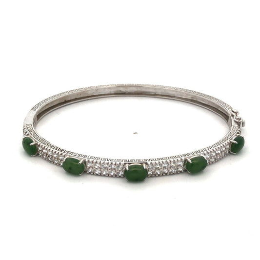 Desinger PAJ JOY 925 Sterling Silver Oval Jade CZ Accented Hinged Cuff Bracelet