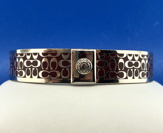 Authentic Coach Silver Tone Burgundy C Signature 1/2" Bangle Cuff Bracelet