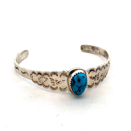 Navajo Jim Yazzie 925 Sterling Silver Turquoise Storyteller Open Cuff Bracelet