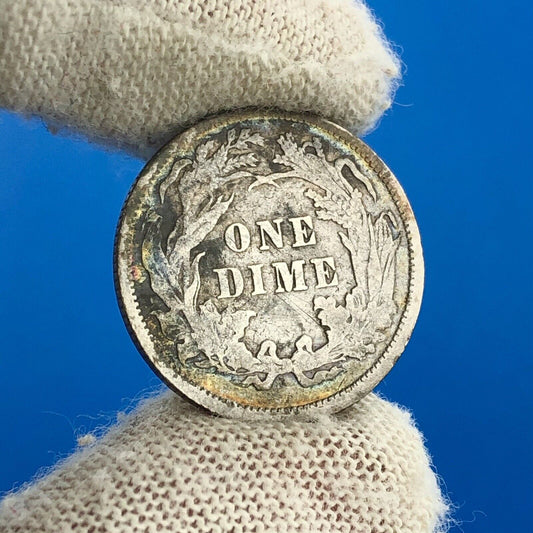 1890 P Silver Seated Liberty Dime Better Key New Orleans Coin Sunset Tone AU DET