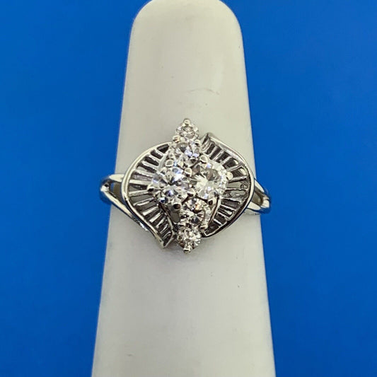 Retro 14K White Gold Diamond Waterfall Modernist Engagement Cocktail Sz 4 Ring