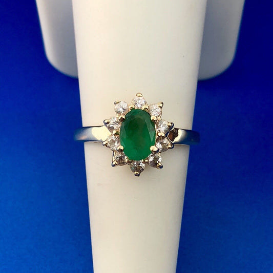 Estate 10K Yellow Gold Emerald Diamond May Anniversary Engagement Ring