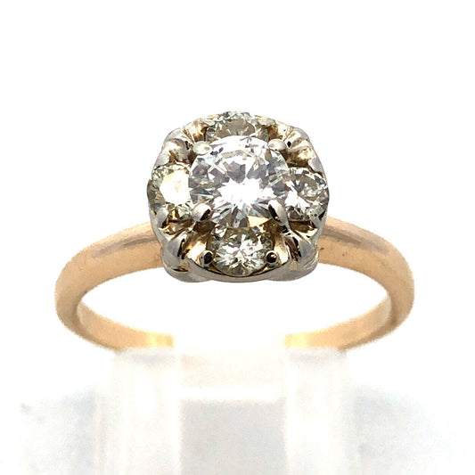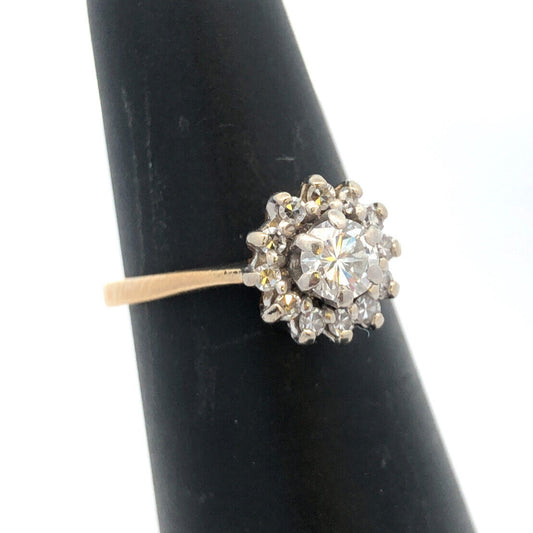 Vintage 14K Yellow Gold Diamond Flower Cluster Engagement Anniversary Ring