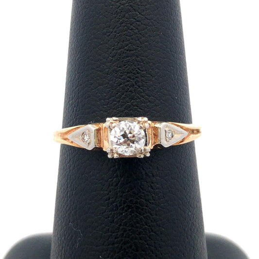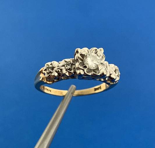 Vintage 14K Yellow White Gold Diamond Solitaire Accents Two Tone Engagement Ring