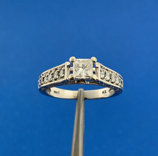 Designer 14K White Gold Princess Diamond Solitaire Accented Engagement Ring