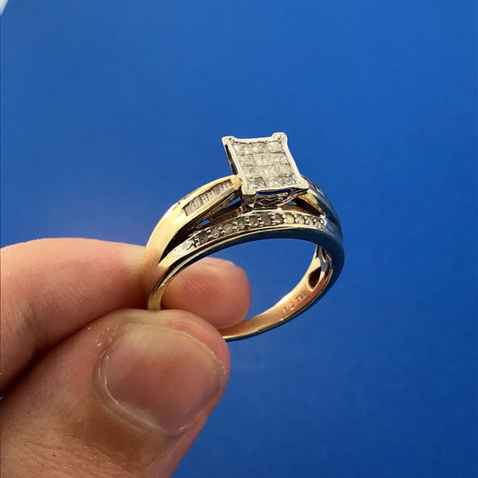 Vintage ZEI 10K Yellow White Gold Diamond Cluster Empire Style Engagement Ring