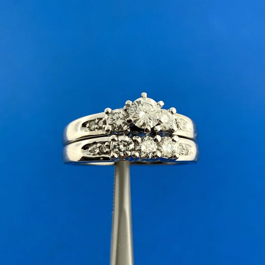 Designer 14K White Gold Round Diamond Engagement Wedding Band Bridal 2 Ring Set