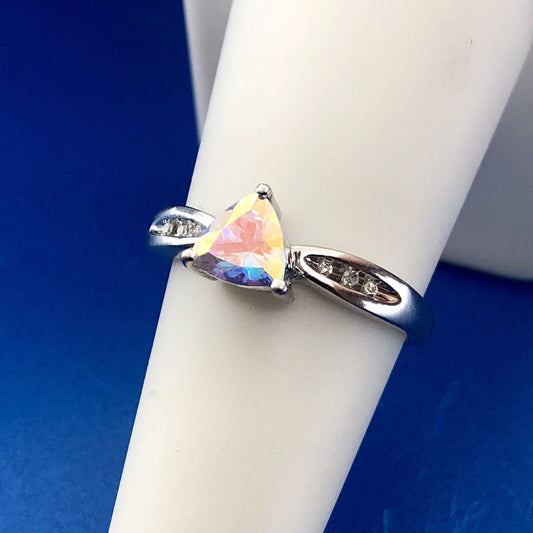 Modern 10K White Gold Trilliant Passion Topaz Diamond Engagement Promise Ring
