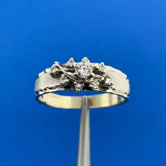 Vintage 14K White Gold Diamond Solitaire W/Accents Engagement Ring