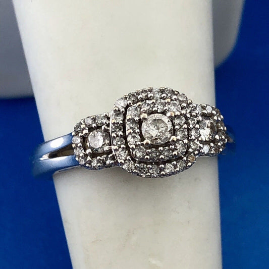 Estate 10K White Gold Diamond Double Halo Accents Engagement Anniversary Ring