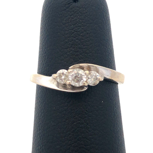 14K White Gold Round Diamond Trio Bypass Style Bridal Promise Engagement Ring