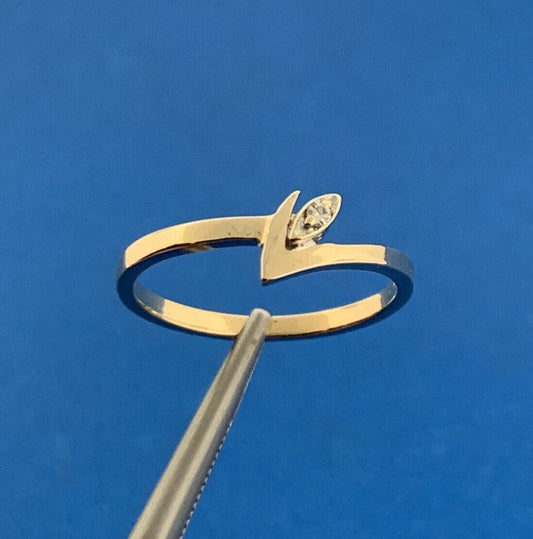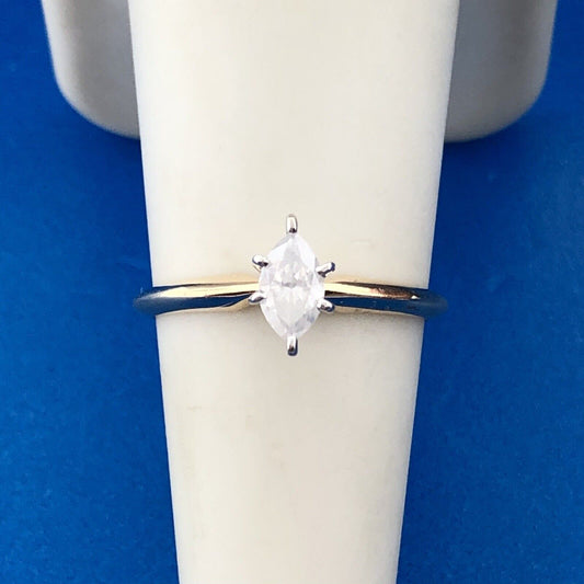 Vintage WTJ 14K Yellow Gold Marquise Diamond Solitaire Engagement Promise Ring